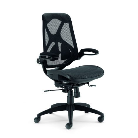 Uredska stolica sa sjedalom i naslonom u crnoj mreži, s plastičnom peterokrakom bazom; Kotači za mekane podove; Sklopivi rukonasloni