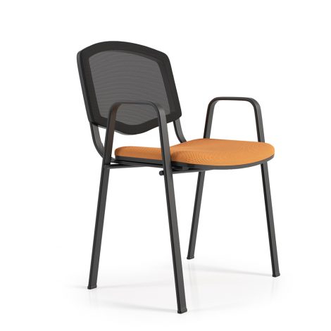 Konferencijski stolac u tkanini s rukonaslonima i naslonom u mreži.
