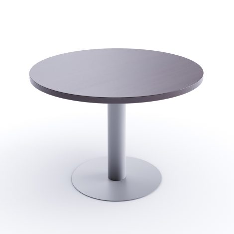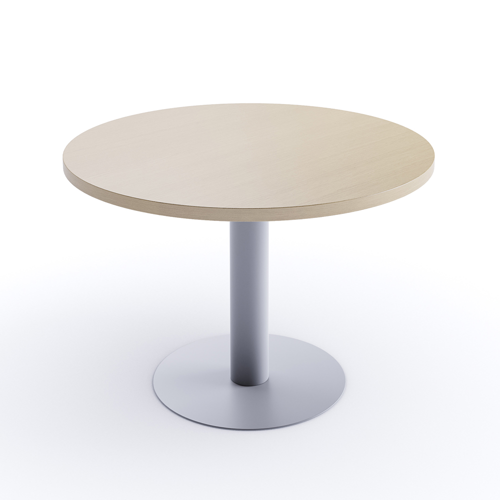 Radna ploča stola promjera 110 cm izrađena od iverala debljine 36 mm. Rubovi kantirani ABS rubnom trakom debljine 2 mm. Noga metalna plastificirana, okrugla, promjera 12 cm, s postoljem promjera 60 cm.