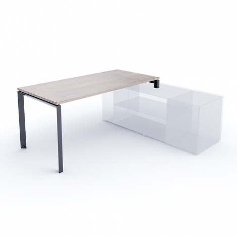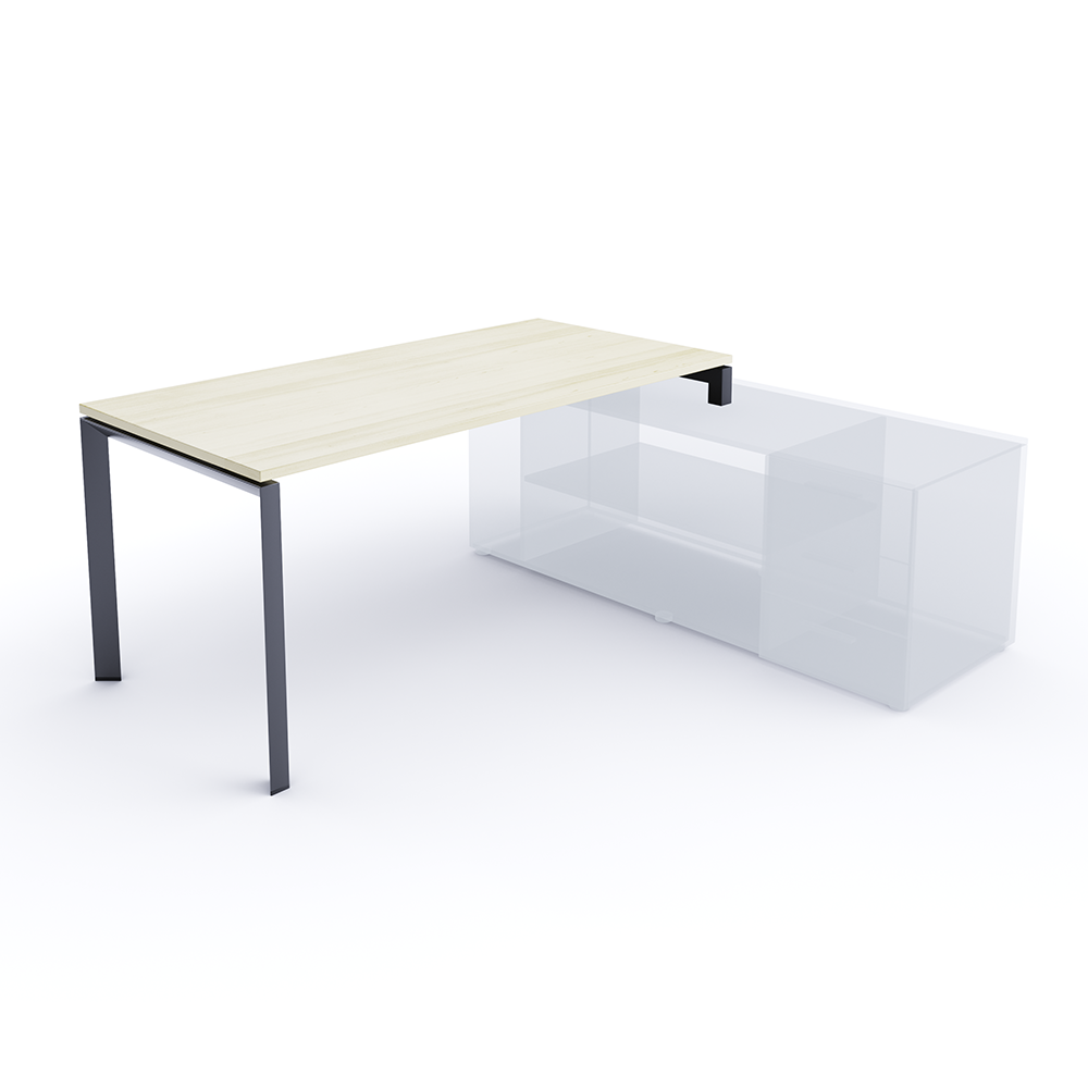 Radna ploča stola izrađena od iverala debljine 25 mm. Rubovi kantirani ABS rubnom trakom debljine 2 mm. Metalne noge trokutastog presjeka izrađene od profila 50×50 mm, plastificirane te povezane parom plastificiranih metalnih konzola. Stol se jednom stranom oslanja na bazni element. Visina stola može se nivelirati pomoću ugrađenih nožica za nivelaciju ugrađenih na nogu stola te na bazni element.